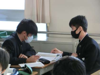 三角形の合同条件を使った証明の学習に取り組んでいました。まずは照明の解答のパターンを学び、その後練習問題に挑戦していきます。筋道を立て、「仮定」と「結論」がしっかり結びつくよう、学習を進めていってほしいと思います。