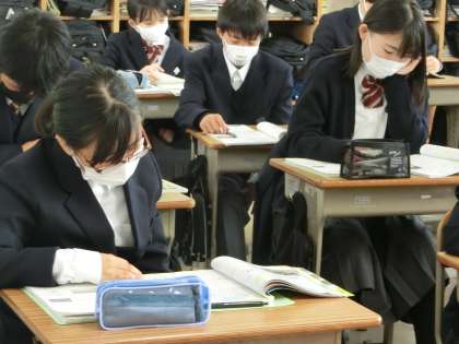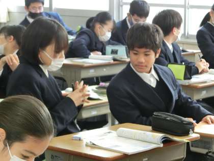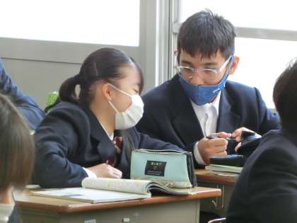 1年5組の社会・地理分野の授業の様子です。