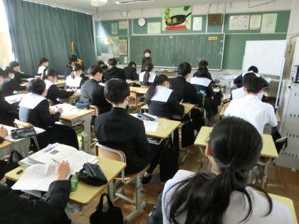 松尾芭蕉の「奥の細道」を題材に、「作者の思いを想像しよう」をテーマに学習が進められていました。自分の考えを仲間に伝え合っていきます。根拠や理由もしっかり述べようと真剣に取り組んでいました。