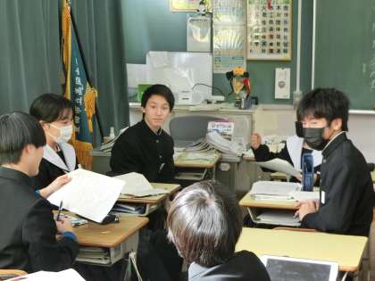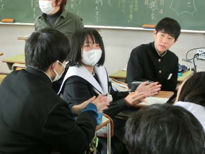 松尾芭蕉の「奥の細道」を題材に、「作者の思いを想像しよう」をテーマに学習が進められていました。自分の考えを仲間に伝え合っていきます。根拠や理由もしっかり述べようと真剣に取り組んでいました。