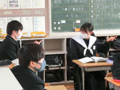 「電流と磁界」の単元で、「電流が磁界から受ける力をまとめよう」をテーマに学習が進められていました。生徒たちが左手を使ってその仕組みを理解しようとしています。そう、「左手の法則」です。指がつってしまうのではないかというくらい、また関節が外れてしまうのではないかというくらい、一生懸命動かしています。生徒が本気になるとはこういう姿のことをいうのだと改めて感じました。