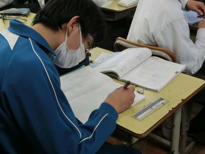 反比例のグラフをしっかりかけるよう、たくさんの練習問題に取り組んでいました。座標を求めるためにこれまで学習した表を用いること、たくさんの座標を求めることでより正確なグラフがかけるようになることを学んでいました。学習のつながりの大切さを改めて感じているようでした。