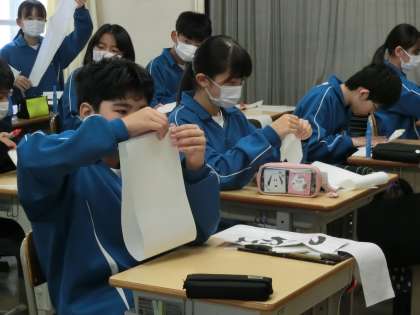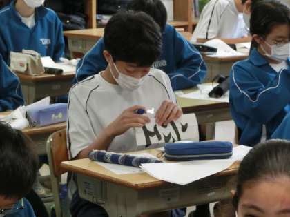 本格的な書き初めの練習に入る前に、練習の際のポイントを確認したり、必要な準備を進めたりしていました。