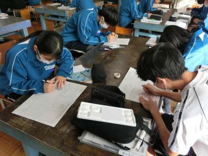 昨日の3年5組の美術の授業の様子です。