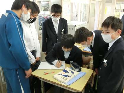 「比例を利用して問題を解こう」をテーマにたくさんの練習問題に取り組んでいました。自分の解き方を仲間に分かりやすく伝えようと必死です。