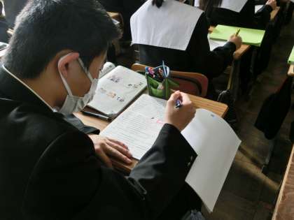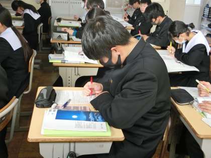 長文の読解に取り組んでいました。教科担任の解説をメモしたり、マーカーで印をつけたり、自分専用のオリジナル学習ノートが出来上がっていきます。