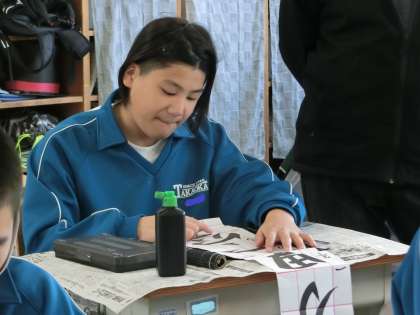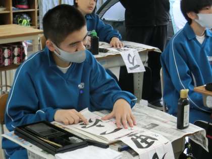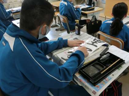 書き初め大会に向けての練習が始まっていました。学年でお題は違いますが、書くときのポイントをお手本を指でなぞり、体に覚えさせていきます。今後の授業はもちろん、冬休み中の練習でもしっかりと思い出して取り組んでほしいと思います。