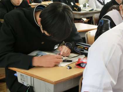 奥の細道の学習で、「作者の思いを想像しよう」をテーマに学習が進められていました。グループでまとめた作者の思いを発表していきます。解釈はさまざまですが、仲間の発表を聞きながら自分たちのグループとの考え方の違いを一生懸命理解しようとしていました。