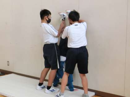 技のレベルを上げるため、撮影した動画を見ながら仲間のアドバイスをもらって練習に励んでいました。間もなく、技のテストもあるようです。とことん追究と練習を繰り返してほしいと思います。