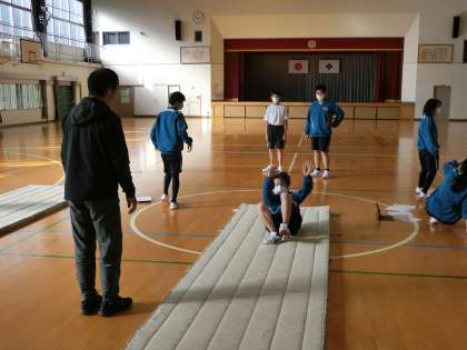 技のレベルを上げるため、撮影した動画を見ながら仲間のアドバイスをもらって練習に励んでいました。間もなく、技のテストもあるようです。とことん追究と練習を繰り返してほしいと思います。