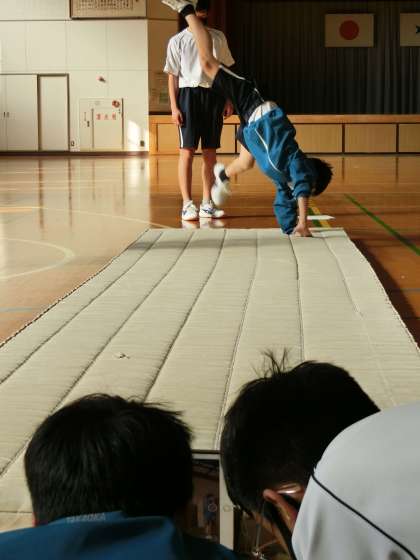 昨日の1年4・5組の体育・マット運動の授業の様子です。
