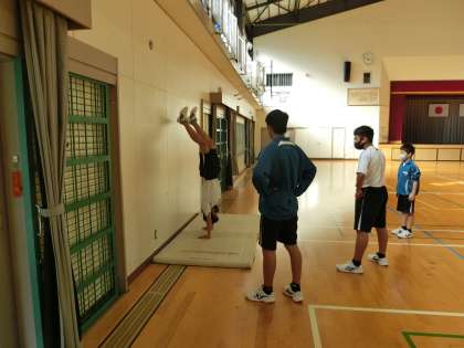 技のレベルを上げるため、撮影した動画を見ながら仲間のアドバイスをもらって練習に励んでいました。間もなく、技のテストもあるようです。とことん追究と練習を繰り返してほしいと思います。