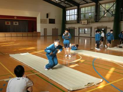 昨日の1年4・5組の体育・マット運動の授業の様子です。