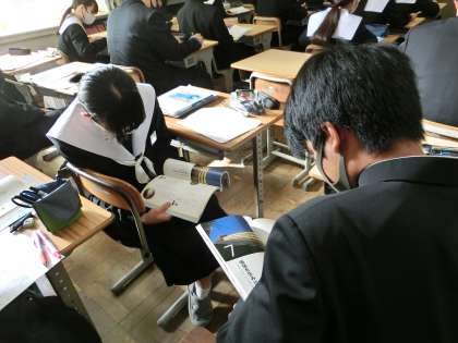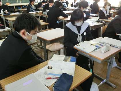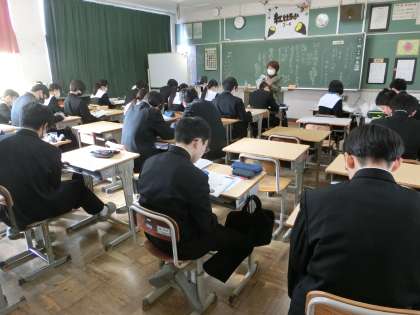 3年4組の国語の授業の様子です。奥の細道の学習で表現や文体の特徴を確認したあと、音読のテストが行われていました。