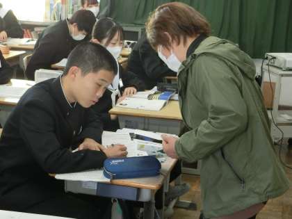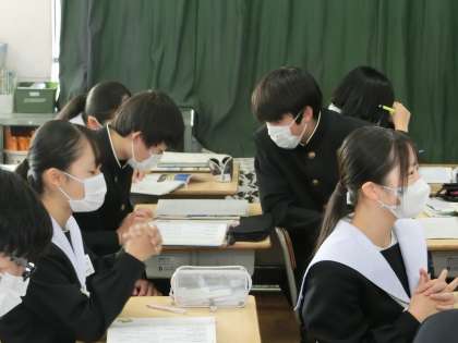 3年4組の国語の授業の様子です。奥の細道の学習で表現や文体の特徴を確認したあと、音読のテストが行われていました。