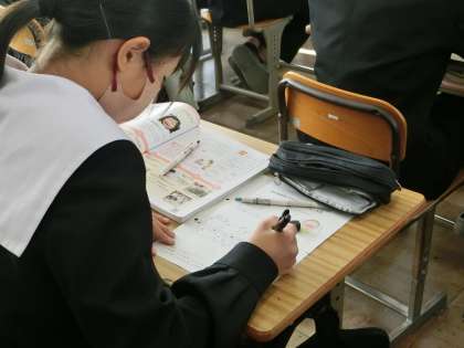 2年3組の家庭科の授業の様子です。「子供が泣いているのはどうして?」をテーマに学習が進められていました。