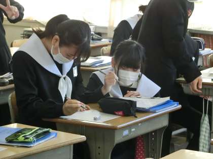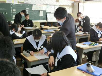 3年3組の数学の授業の様子です。円周角に関しての証明問題に挑戦していました。苦手を克服するために、仲間や教科担任などからの解き方のアドバイスをたくさんもらっていました。
