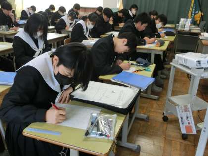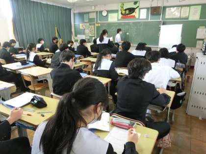 3年5組の数学の授業の様子です。「三平方の定理」について学んでいました。まずは基本をしっかりと理解して覚え、今後の演習問題に備えてほしいと思います。