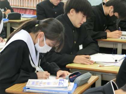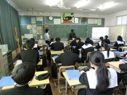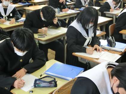 3年5組の数学の授業の様子です。「三平方の定理」について学んでいました。まずは基本をしっかりと理解して覚え、今後の演習問題に備えてほしいと思います。
