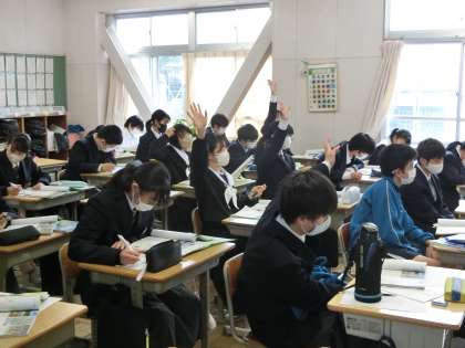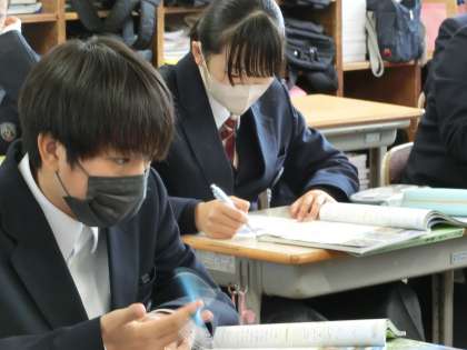 1年2組の社会・地理分野の授業の様子です。南アメリカ州のまとめを行ったあと、新たにオセアニア州の地形や国名について学んでいました。