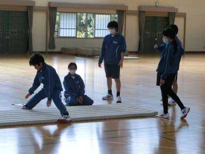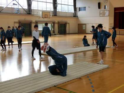 1年1組の体育の授業の様子です。マット運動の実技テストが行われていました。練習してきた成果をしっかりと発揮できていたようです。また、難易後の高い種目にも積極的に挑戦していました。