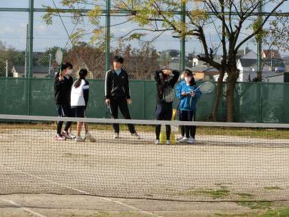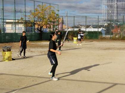 ソフトテニス部の活動の様子です。地域指導者の熱心な指導のもと、乱打メニューに一生懸命取り組んでいました。寒さに負けずTシャツで活動する生徒も多く、活発に練習する様子が伝わってきます。