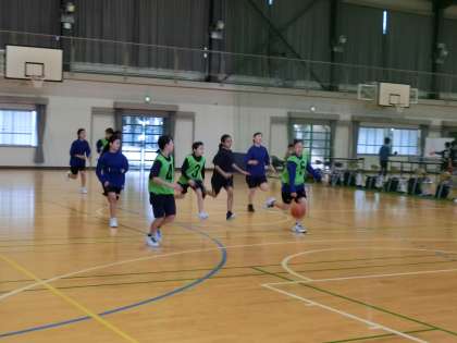 バスケットボール部の活動の様子です。梅坪台中学校のみなさんにお越しいただき、練習試合が行われていました。途中、1年生同士の紅白戦も行われました。
