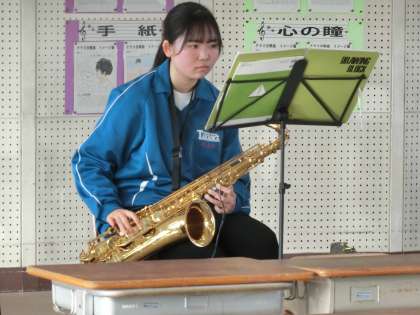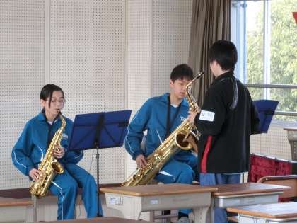 吹奏楽部の活動の様子です。新しくドラムの練習に取り組んでいる部員がいました。そしてサックス担当の生徒には、指導者がつきっきりで指導に当たってくださっていました。また、先輩が後輩に熱心の教えている場面も見かけました。