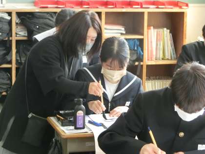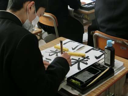 書道ボランティアの方をお招きして、書き初めの練習に取り組んでいました。本番までの練習で常に意識してほしいと思います。