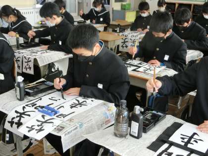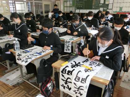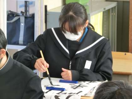 書道ボランティアの方をお招きして、書き初めの練習に取り組んでいました。本番までの練習で常に意識してほしいと思います。