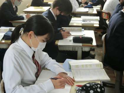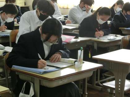 12/4 1-3 たくさんの問題に取り組むべし 2 公開日 2023/12/04 更新日 2023/12/04 各学年から 1年3組の数学の授業の様子です。 比例・反比例の関係を使った演習問題で、「紙パック何枚分でできる?」をテーマに学習が進められていました。