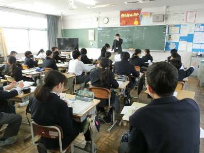 1年1組の社会・地理分野の授業の様子です。南アメリカ州のまとめを行ったあと、新たにオセアニア州の地形や国名について学んでいました。