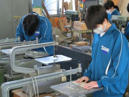 木製品づくりの学習で、いよいよ組み立て作業に入っていました。まっすぐに取り付けるために面をきれいに削ったり、くぎを打つ前にしっかりとボンドで固定したり…。それぞれが作業に没頭していました。