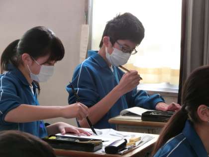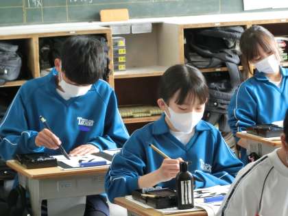 書き初め大会に向けての練習に取り組んでいました。今回は豊田書道連盟より書道ボランティアの方にお越しいただき、丁寧に指導をいただきました。今後の練習でも学んだことを意識して、冬休み明けの大会本番で素晴らしい作品を仕上げてほしいと思います。