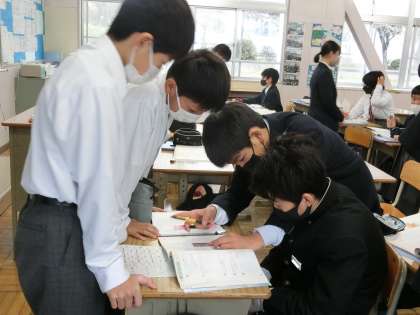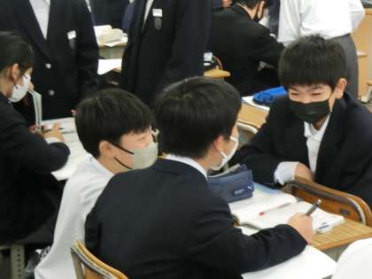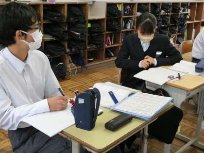 比例・反比例の単元がひと段落したため、テキストの問題を一気に解いていました。当然、悩んでしまう問題もあるようでしたが、すぐに質問できる先生や仲間が近くにいることで、演習もはかどっているようでした。