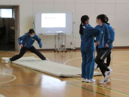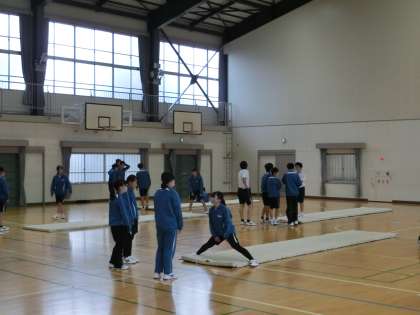3年1・2組の体育・マット運動の授業の様子です。