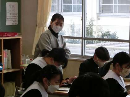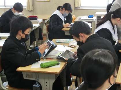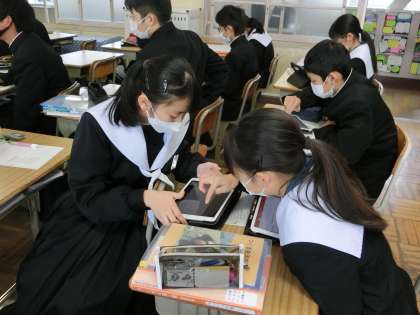 幼児の心の発達の単元で、「遊びが必要なのはなぜだろう?」をテーマに学習が進められていました。幼児期の遊びの必要性をしっかりと確認したうえで、どんな遊びが有効かを考え、タブレットにまとめていました。