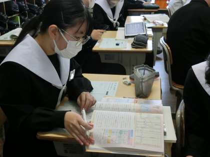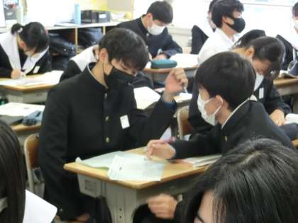 グローバル経済について学びを深めていきます。円安・円高、多国籍企業の成長、情報通信技術の発達などのメリットとデメリットを考えていきます。視点は「日本にとって」。これまで学習してきた内容を思い出し、しっかりと自分の考えをもっていました。