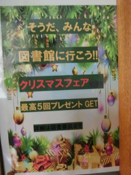 図書委員会の「クリスマスフェア」のポスターが校内の至る場所に貼られています。プレゼントがもらえるというフレーズに心躍る生徒も多いようです。