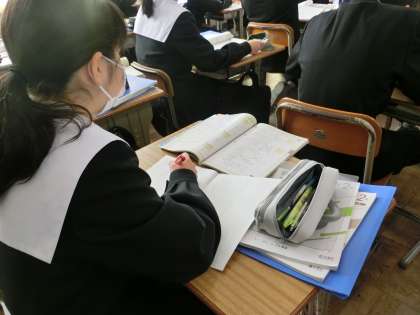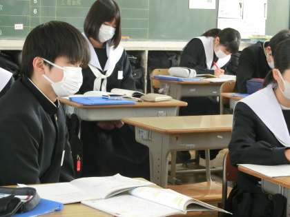 角の大きさを求める学習で、たくさんの演習問題を解いていました。学習してきたことを整理しながら、速く正確に求める方法を追究していました。