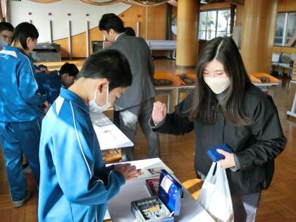 先生たちへの接客はもちろん、商品の包装や代金のやり取りもスムーズで大盛況となりました。販売した生徒も購入した先生たちも笑顔いっぱいの特売会になりました。