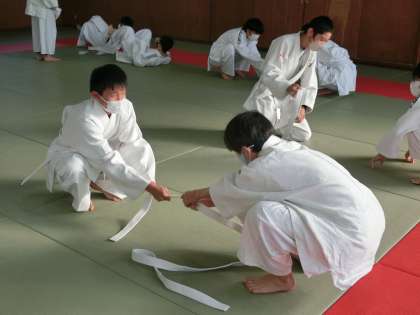 2年4・5組の体育・柔道の授業の様子です。