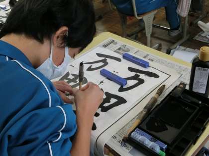 書道ボランティアの指導を受けながら、書き初めの練習に取り組んでいました。それぞれ意識するポイントが違ってきますが、今後の練習でもしっかりと思い出して取り組んでほしいと思います。