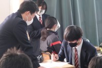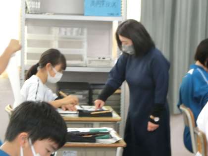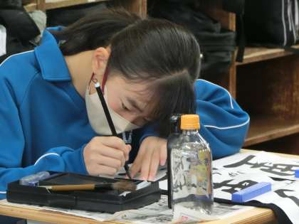 書道ボランティアの指導を受けながら、書き初めの練習に取り組んでいました。それぞれ意識するポイントが違ってきますが、今後の練習でもしっかりと思い出して取り組んでほしいと思います。