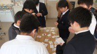 書写ボランティアの丁寧な指導のもと、書き初めの練習に取り組んでいました。手元の映像を学習用タブレットで見ながら、解説を聞きます。その後、ポイントを思い出しながら一文字ずつ丁寧に練習していました。
