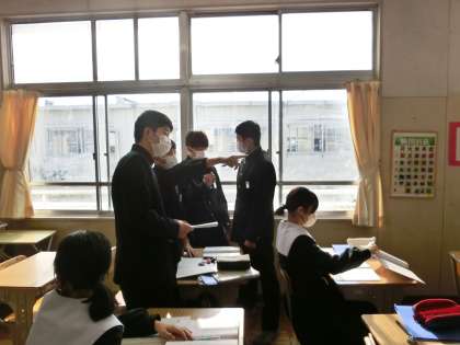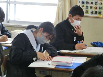 角の大きさを求める学習で、たくさんの演習問題を解いていました。学習してきたことを整理しながら、速く正確に求める方法を追究していました。