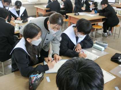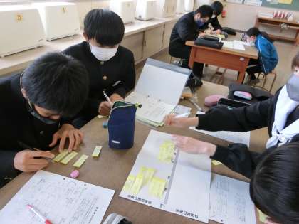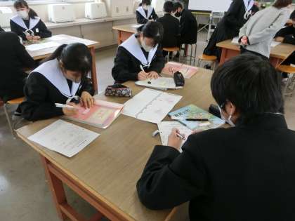 「幼児はどんな発達をするのだろう?」をテーマに学習が進められていました。ミッションと題した宿題で、事前に自分の幼少期の様子を家族に聞いてきています。それをグループ内で共有し、どんな発達がいつ頃見られたかをまとめていきます。昔のことを懐かしがりながら楽しく活動していました。