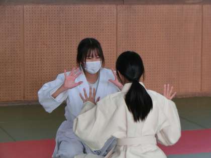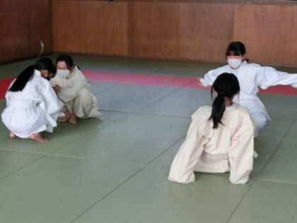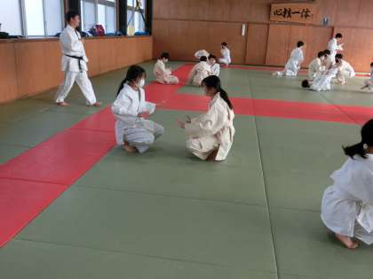 今回は「手押し相撲」に取り組み、安全な受け身の学習でした。相手を代え、対戦を通して安全な受け身をマスターしていきます。