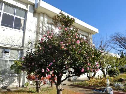 校内のあちこちで、ツバキの花が目を楽しませてくれています。