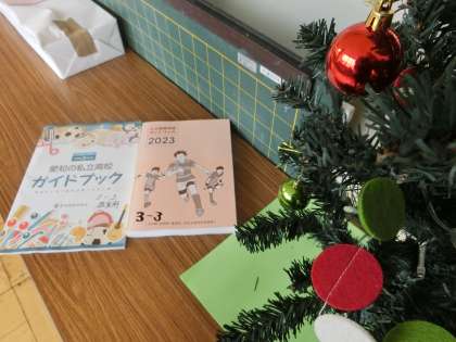 校舎内のあちこちで、赤と緑の組み合わせ、そう、クリスマス関連の掲示物を目にするようになってきました。ただ、よく見てみるとその近くには日頃から心が得てほしい、または目にしてほしい内容の掲示物もあることが分かりました。何とも上手な方法だと、少し感心しています。